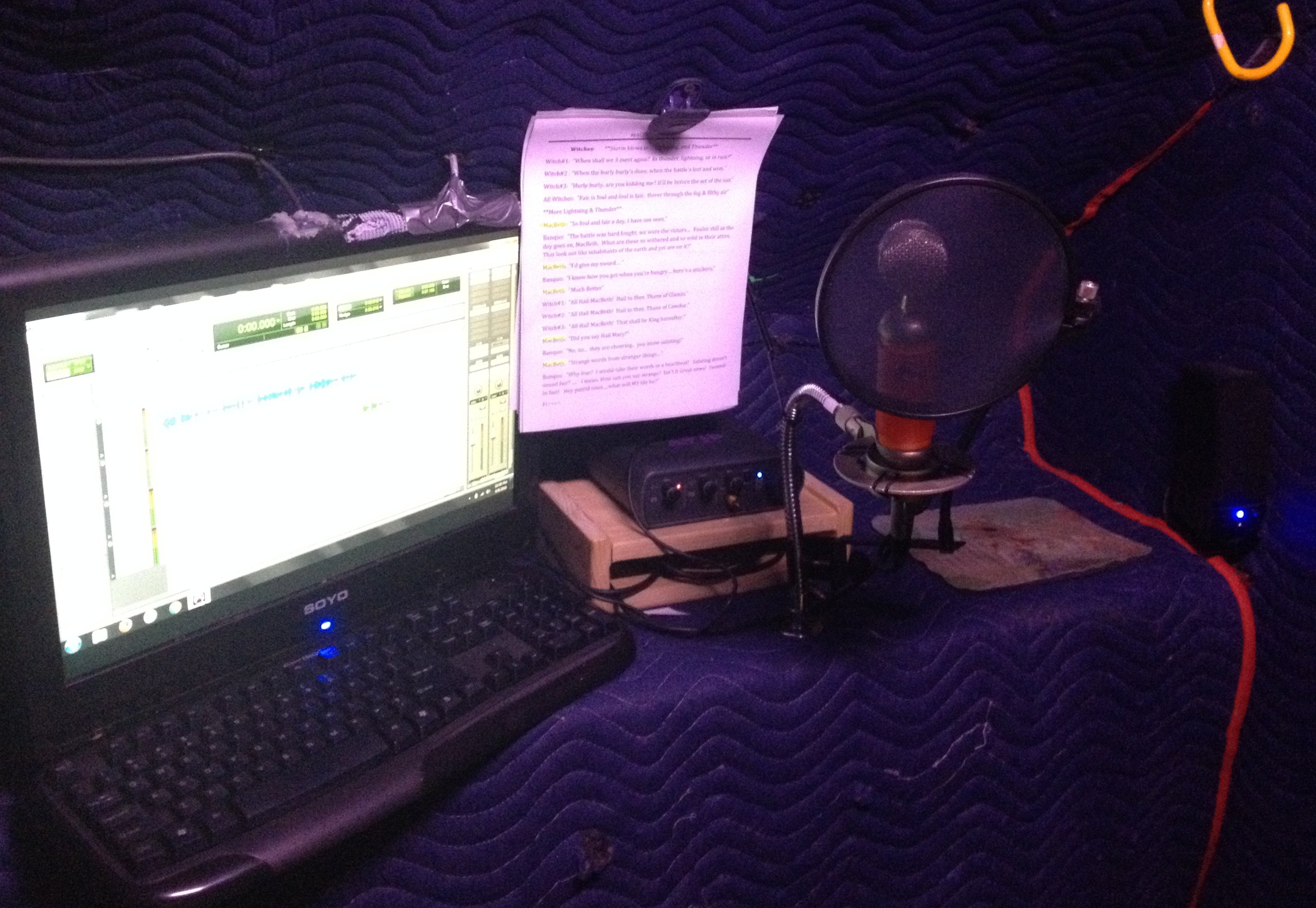 shipping blankets over the doorway and walls of the sound booth, and my